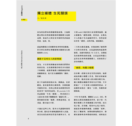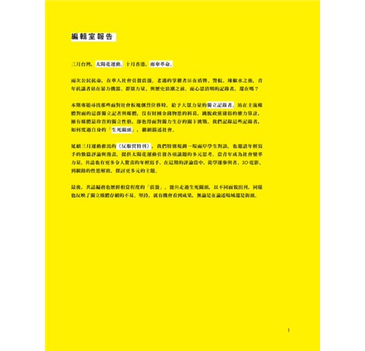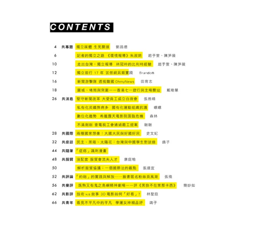 最後,共誌編務也歷經相當程度的「震盪」。能夠走過生死關頭,以不同面貌出刊,同樣也反映了獨立媒體存續的不易。堅持,就有機會看到成果,無論是在論述場域還是街頭。