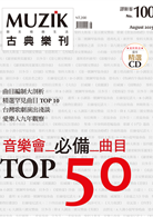 在「MUZIK 100」的「左翻時事」特刊企劃中,我們以長達三個月的時間,一筆一筆地整理,以《MUZIK》創刊號的二○○六年十月號為時間起點,至一百期前的二○一五年七月號止,在這陪伴《MUZIK》一百期的將近九年資料中,整理出在台灣國家音樂廳舞台上,所有演出樂曲的次數。透過此種「量化整理法」,歸納出一個「音樂會必備曲目TOP 50」的精準名單,與「右翻知識」的「百期唱片精選50」互相呼應,組合成「MUZIK 100」。