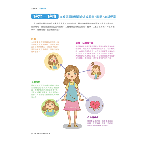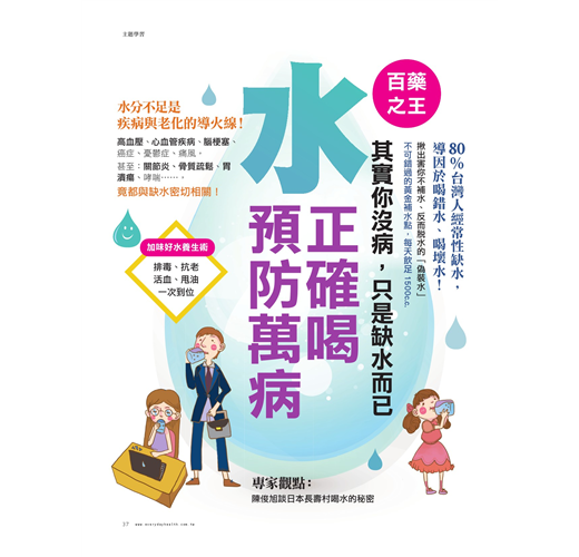 是否時常聽聞身邊的男性親友有高血壓、痛風、心血管疾病;女性親友有骨質疏鬆、憂鬱症、椎間盤突出等困擾呢?這些常見症狀帶來的不適感甚至可能威脅到生命的嚴重性,患者多需要求醫看診、服用藥物來治療,也必然歷經經常性地回診觀察等繁瑣的過程。付出這麼大的耐心和珍貴的時間,但往往,卻忽略了最簡單的動作:你喝水了嗎?
