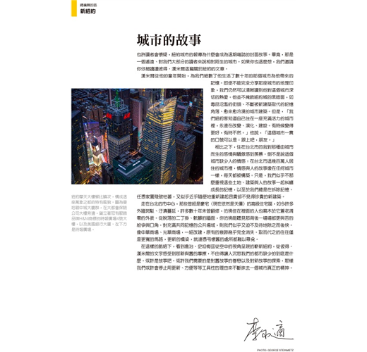 【NEW YORK SKYLINE 紐約天際線】全美最大之城--紐約,你將會看到史無前例的筆直延伸上去,她的天際線、河岸即將改變。曼哈頓還在建設的新大樓就有七棟高度超過1000英呎。這七棟建築物就有兩棟包辦了紐約市三大高的大樓,分別是自由塔和公園大道432號。這些建案是這波受到無與倫比的市場成長趨使所創下的空前高樓熱潮的前鋒。這條正在改變當中的紐約天際線正在影響文化偶像―例如紐約大都會球隊拒絕換掉他們商標上的天際線。電視主持人Jimmy Fallon正試著找出何時來訂下他今晚來秀的節目主持台後的透視窗景建築模型。攝影師George Steinmetz空拍紐約構成這篇影像報導。