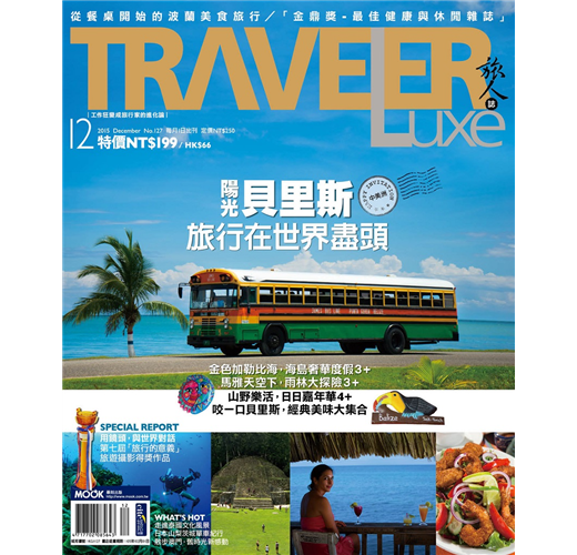 空氣中飄散著熱帶的氣息,鮮豔的房舍,黝黑的肌膚,燦爛的笑顏,這次《TRAVELER Luxe旅人誌》往地球的另一端前進,蔚靜和文欽千里迢迢前往充滿陽光的中美洲貝里斯,為我們帶來第一手的體驗報導,從潛入湛藍的加勒比海大藍洞開始,忙裡偷閒享受奢華的海島假期,在遺跡中聆聽馬雅古文明的神秘故事,作客馬雅村體驗烹飪樂趣,跟著 Garifuna 人一同打鼓高歌,回歸快樂純樸的日子,當然一定得享用這裡才吃得到的貝里斯經典美食。南半球的陽光正好,請和我們一起,擁抱冬日的金色假期。