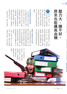 其實,你可以不用刻意避開自己愛吃的食物,僅僅只是改變一下進食的順序,血糖值就可以降低;「運動」並不都是讓你汗如雨下,先玩一個小小心理測驗,你就會知道哪一種運動最適合你;調適心情放輕鬆,同樣也能降血糖。