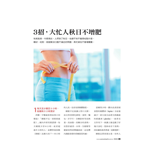 不同於春天的雨水與夏天的濕氣,台灣的初秋風大加上濕度降低,天氣偏燥熱。中醫認為秋氣主燥,肺燥氣虛,容易耗氣傷陰,因此,《康健養生帖》秋季號以「潤肺、養肺」為主軸,以「養、收」為養生原則,一貫從調養體質、經絡穴位、飲食、運動著手,預防秋燥的不適,儲存可安度冬天的能量。