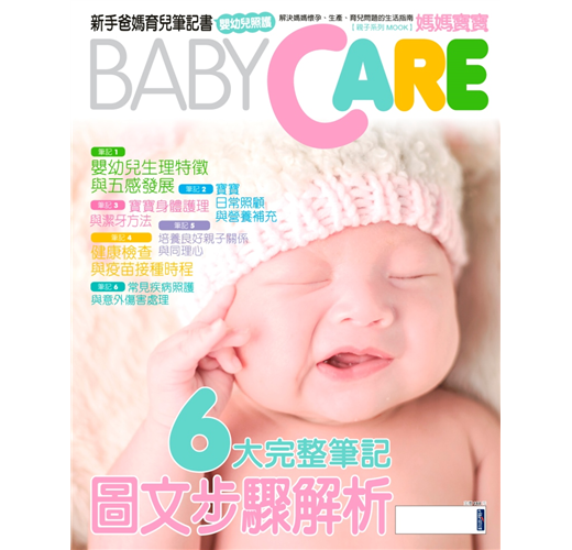 第一次擔任爸爸或媽媽的角色,相信許多人還是充滿著惶恐與不安。該怎麼幫軟軟的新生兒洗澡?如何知道寶寶肚子餓了?寶寶不舒服是不是要立刻掛急診?嬰幼兒照護全書,從認識新生兒的生理特徵談起,只要熟悉寶寶的日常生活,享受照顧寶寶的過程,就可以輕鬆成為一個開心育兒的新手爸媽!筆記 1 認識嬰幼兒生理特徵 16P筆記 2 熟悉寶寶的日常照顧 14P 筆記 3 學習寶寶的身體護理 16P 筆記 4 健康檢查與疫苗接種 10P 筆記 5 打造良好的親子關係 16P 筆記 6 寶寶常見疾病與照護 18P