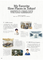 概念清楚後,發展架構就會是有趣的過程。每個人丟一些關於「慢」的提案;甚至在日常的看展、逛店、採訪中,因為已有一個題目在心中,你會有題目雷達,從這些不直接相關的活動中得到值得納入內容的題材靈感。然後,完整的骨架逐漸成形,你再設定幾個高難度的採訪人選或夢幻名單,把抽象的概念揉捏成具體的理想,逐一(想辦法)實現。 中間的執行若是精準,時間品質掌握得宜,收稿就會是一連串如中奬般的驚喜。在下町散步、到神樂坂體驗異國風情、搭都電荒川線享受迷路的樂趣、在新式錢湯泡湯、住進比旅館還舒適的guest house,慢節奏的東京,比我們預期的還要有魅力。