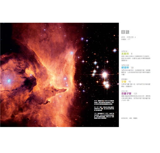 這本《圖解銀河系》特刊的章節是跟隨阿爾庫塔斯的長矛手一起推進,把我們的宇宙想成四層環環相扣的「宇宙」。