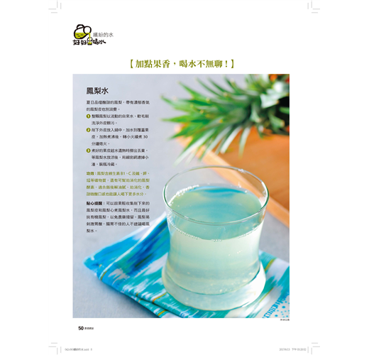 用對方法,不但能補充水分,還能讓喝水變得更有趣,並且可以減少各式含糖飲料的攝取,喝出健康和美麗。聰明喝、快樂喝,好好喝水,就是最好的養生。