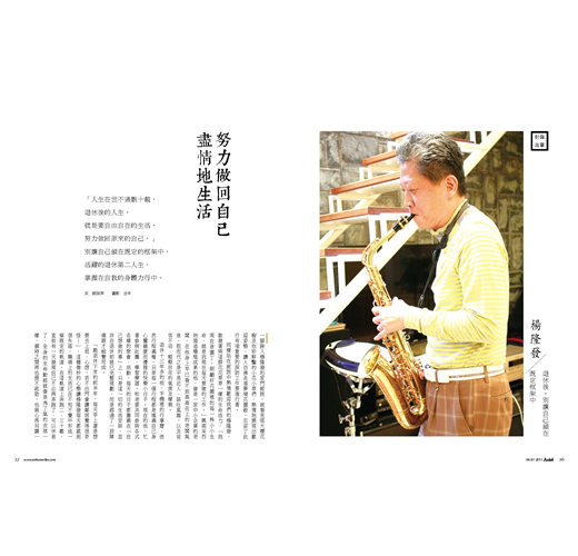 「人生在世不過數十載,退休後的人生,就是要自由自在的生活,努力做回原來的自己。」別讓自己鎖在既定的框架中,活躍的退休第二人生,掌握在自我的身體力行中。