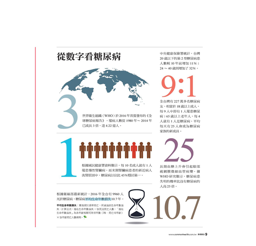 治療篇,一次了解最新治療趨勢:如何不花大錢也能降血糖的祕訣一次公開。哪些關鍵字一定要懂?「黎明現象」是什麼?被確診時該問醫生哪些問題?以及正確血糖監控法。藥物及相關併發症的知識等等。