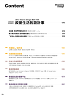 每年《Shopping Design》編輯部在思考Taiwan Design Best100入選者的時候常陷入掙扎,並非因為好作品或想法寥寥無幾,反而是當創意如雨後春筍迸發時,在當中發現有靈魂的亮點,實在非常不易。每年的十二月都是Taiwan Design Best100特輯,在邁入第六屆的2017,精彩又驚艷的人事物不僅更多,同時也讓我們感受到入選者們「正在與時代並進」的特質。想起當時為了籌備前導的特別報導,編輯造訪了春池玻璃、土地改造計畫「ParkUp GT」以及與設計師王艾莉和香色主廚Zoe,不同領域,卻在訪談中不約而同提到「可能性」這個關鍵字。「可能性」也代表一種開放空間,也可想成是一種彈性,不把自己設限,隨時可變。而相反地也點出「僵化」是個全世界都在思考面對待解決的問題。而失速的時代裡,人們已經沒有太多美國時間在原地踏步,如果要有更好的生活,就要更加靈活地去改變。正如前面提到,今年的入選名單令人驚艷,便是因為我們看見這些好點子正在做非常有意思的「改變」,從一罐飲料到教育計畫甚至城市環境,都被設計喚起更多可能性﹔世大運的影片與車廂廣告點燃了台北人的熱情、臺虎精釀的山水畫瓶身讓乾杯多了詩意、雜學校讓學習怎樣都有趣怎樣都不奇怪、頁讀車輪餅則帶大家用舌尖去品味閱讀……看似小事,也都是重要的事,我們衷心希望在分享這100個2017最精采的設計人事物以後,也能帶給大家鼓舞:每個好的設計都是一個好的「念」,你要相信自己絕對也有靈光綻放、改變一切的可能。