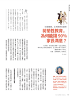 世界與視野 World & Vision 延續天下集團對國際趨勢與全球視野的關注,每期報導最先進教育趨勢與行動,呈現更廣闊的世界觀。 學校與教育 School & Learning 親師生三方溝通平台,深入探討教育領域看似針鋒相對的議題,如「一綱多本」等。每期固定”親師交流道”、”相對論”、”校園新視界”等欄木,強化親師、親子間的深度溝通。 家庭與教養 Family & Parent 針對家長的需要提供更多更實用的家庭教養法則。每期固定”教養一點通”、”親密關係”、”學習幫手”等欄目,更貼近親子家庭每日面對的實際需求。 生活 Life 以「友善家庭」價值觀為核心,提供更有品質「家庭與生活」資訊。每期固定有適合親子共享休閒生活建議、家庭健康提案、親子共讀書,全方位促進家庭生活的豐富與親密。