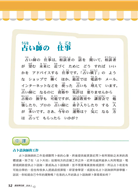 這個單元主要介紹日本各種料理或食材。日本人也跟台灣人一樣喜歡過新年,但過的是新曆年,習慣在1月1日當天享用日式年糕湯。不過,每家年糕湯的口味都不太一樣,就連年糕也分成圓的和方的。趕快翻開雜誌第46頁,一起去看看吧!