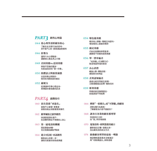 而每次相同記憶浮現,我就會想,「世界上有沒有一本書,是介紹各式各樣業務技巧的?」如果真的有這麼一本書,那不論資深或菜鳥業務,面對還不熟悉,但真正需要幫助的客戶,也能快速建立關係,進而成交吧!