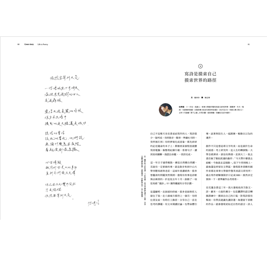 說來奇妙,本期《小日子》的封面故事〈為自己讀詩〉是在編輯會議中由實習生所提出,並獲得同期實習生的全面支持。當時聽到這個提案,編輯姊姊們感覺並不強烈,詩這個文體對於編輯跟我來說(所謂的30世代),我們仍舊讀詩,然而中間隔著若即若離的距離。此篇封面做完,我們真正明白,在現下臺灣的20世代,詩早已成為一種全面滲透的生活方式。