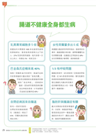 日常生活中,飲食最直接影響腸道健康,我們不僅要少吃傷害腸胃又傷身的食物,更要懂得挑選適合自己的發酵食物與膳食纖維;飲食習慣深深影響消化道的健康,不良飲食習慣造成心理壓力,同樣也會傷害腸胃;運動促進腸胃蠕動與血液循環,只要從走路開始就有效;困擾許多人的便祕,不妨試試簡單的飲食建議與居家體操。