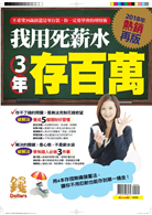 主標題:我用死薪水3年存百萬-2018年熱銷再版內容大綱:Part 1. 為什麼要存到100萬Part 2. 搞清楚自己的用錢模式及財務漏洞:存錢,或存不了錢,關鍵是心態。Part 3. 存到錢的5件事,改變觀念、調整方法Part 4. 預約人生下半場的財富,讓你退休後有錢又有閒 特色:想要存到錢的關鍵,是我們到底願意花多少精神與決心。想管好自己的錢,一定要先管好自己的心。