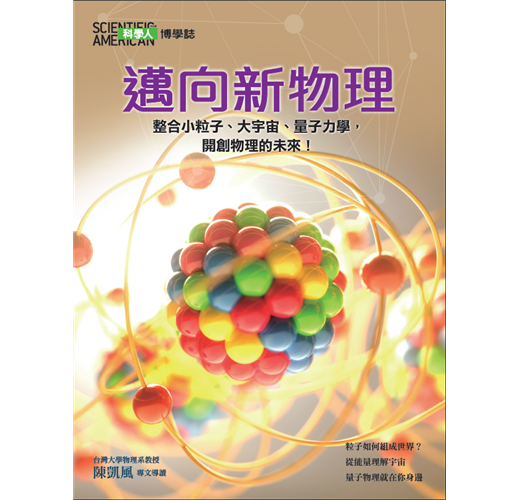 本特輯的主題是「邁向新物理」,集結了數個尖端領域相關研究的文章。如果你想要知道這些方向在近年來的研究成果,尤其想要了解科學家腦袋裡到底在「想些什麼」,那麼本特輯非常值得一讀,一定可以滿足你的好奇心。《邁向新物理》從探討最新的基本粒子物理研究開始:〈為什麼有質量?〉一文討論「質量」這個看似稀鬆平常卻又非常深奧的概念,以及為何必須引入希格斯機制來讓基本粒子獲得慣性、具有質量。同時也討論,我們其實對整個宇宙的質量組成、整個粒子物理標準模型背後結構的知識依然所知不多。〈通往希格斯粒子之路〉則是接續前文,敘述粒子物理學家如何努力在加速器實驗室裡尋找希格斯理論的直接證據,也就是發現「希格斯玻色子」,完成標準模型裡缺失的一片核心拼圖。然而物理學家也十分明白,目前的標準模型絕非終極理論,〈夸克之內別有洞天?〉以及〈幾何萬有理論〉兩篇文章就是討論或許還有更基本的粒子結構;即使這些猜想目前還沒有實驗證據,也因此接受的人並不多。當然,物理學家還是不斷努力把實驗與理論做到最好,至少要在核物理的尺度上必須完備,〈中子壽命真矛盾〉就是在描述這樣的研究工作。