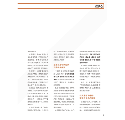 ☞看更多《經理人》特刊☜改變人生的整理術:清空身邊的「冗物」,讓身心靈都得到解放