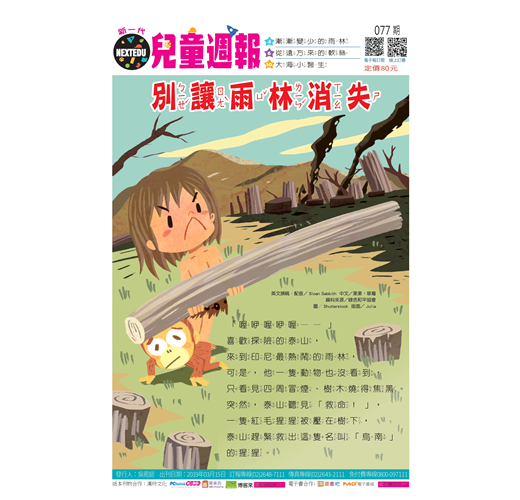 「喔咿喔咿喔——」喜歡探險的泰山,來到印尼最熱鬧的雨林,可是,他一隻動物也沒看到,只看見四周冒煙、樹木燒得焦黑。突然,泰山聽見「救命!」,一隻紅毛猩猩被壓在樹下,泰山趕緊救出這隻名叫「烏南」的猩猩。