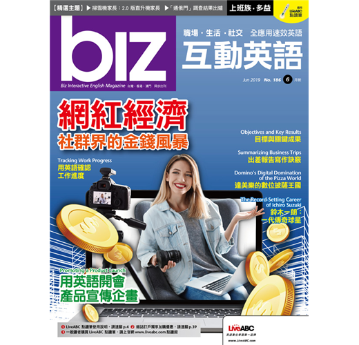 Biz互動英語雜誌是一本專為上班族及準備進入職場者所製作的職場英語學習雜誌,內容廣泛包含職場所需之英語訓練及商業知識,以輕鬆有趣的呈現方式,搭配精心編製的多媒體互動光碟,是職場英語進修及準備多益測驗的最佳讀物。