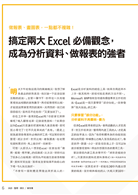 最後,都是把數據整理成直條圖、圓餅圖、銷售毛利分析表,主管會覺得你交上來的報表更清楚。而且每當他針對數字提出疑問,你就立刻在討論現場開啟「樞紐分析表」,馬上交叉分析、得出結果,幫助他解決困惑、做出決策,自然被視為值得信任的好幫手。 這麼划算的自我投資,怎能放過?好消息是要達成這些功效,不需要苦讀多年,只要花短短時間掌握特刊內的Excel使用觀念和技巧,大多數報表你都能搞定!