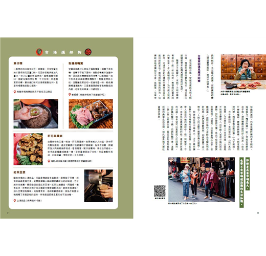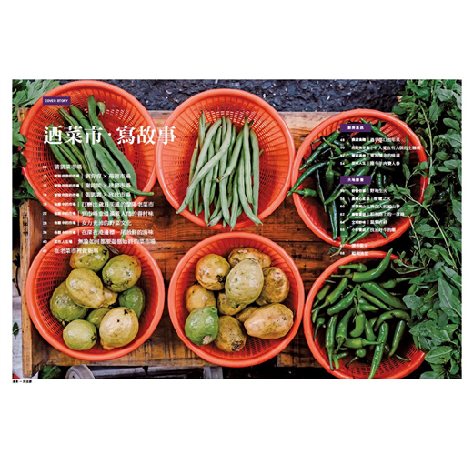 外觀大同小異的市場,因風土人情呈現多元面貌,正是走訪各地市場的趣味所在--我們可以在小農聚集的宜蘭南北館市場買帶土的新鮮蔬菜、到花蓮吉安黃昏市場認識原住民野菜、感受高雄果貿市場熱情的眷村文化,或是於澎湖魚市場購買最新鮮的海味。還有許多較少聽聞卻極富特色的地方市場,等待你來逛徹始終。
