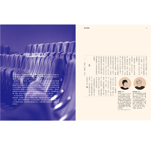 在西方,「公共領域」最著名的現代詮釋來自德國哲學家哈伯瑪斯(Jürgen Habermas),他回溯十八世紀出現的布爾喬亞公共領域,藉此建構一組市民在國家底下的非政治空間,進行理性公共意見交流與對話的公共生活樣態。戲劇學家巴爾梅(Christopher Balme)去年底發行中譯本的新著作《劇場公共領域》,即使用了哈伯瑪斯的「公共領域」,透過不同時期不同型態的文化環境、表演空間的室內化、劇場紛爭、宗教變革等,與「演出」相互形成的協商張力,重新探索劇場的政治、社會功能。