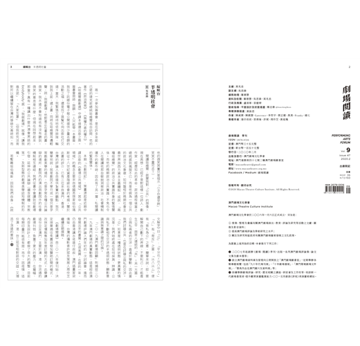 《劇場.閱讀》季刊創刊於2007年,為澳 門現時唯一且發行最久的劇場期刊,十年來立足澳門,連結世界華語地區的劇場發展。 2018年起從免費派發轉型為公開銷售,探訪澳台港三地劇場文化的共同議題,展開劇場與社會的跨界思考,並增加分別以創作、記錄、閱讀等不同面向,邀請各地劇場工作者、 評論人撰寫每期專欄,一起「思考劇場.閱讀時代」。