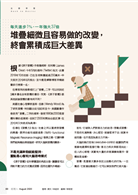 習慣無法養成不是你不夠努力,而是用錯方法。這期封面專題給你1個觀念、4個法則,每天只要改善一點點,等到時間的複利發酵後,你就能獲得大大報酬。