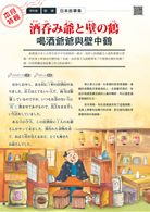 【每日一句】(P.8)準備了到居酒屋享受休閒時光時,從候位、點餐到結帳都能派上用場的實用例句,讓您享用美酒佳餚之餘輕鬆學習日語;【日本萬花筒】(P.10)帶您一窺居酒屋中的社交生活,以及關於居酒屋的小知識。【哪裡不對勁】(P.14)則為您介紹居酒屋特有的用語,讓您的日語更道地。對於廠牌、種類眾多的日本酒感到困惑嗎?本月的【觀光旅遊】(P.26)匯聚了日本各地的清酒以及燒酒,為您細細道來其各有千秋的細緻風味。
