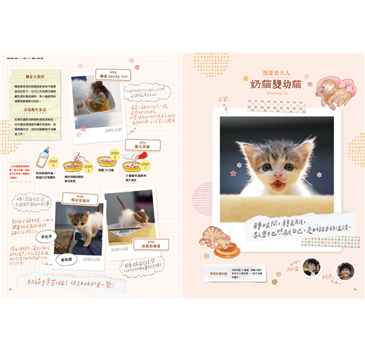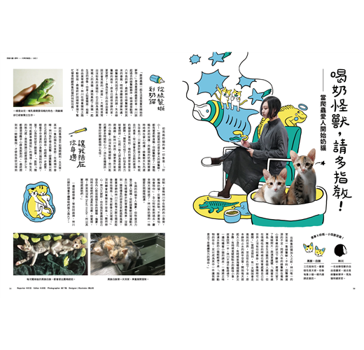 奶貓到底是怎麼樣的生物呢?封面奶貓張大嘴的霸氣畫面,是在採訪過程中突然餓了變身的模樣,常有人說奶貓長得像外星人,的確,奶貓天生自帶一種奇特魔力,讓人忍不住想用整個宇宙的愛去好好養育、日日疼惜,再累也沒關係(笑)。