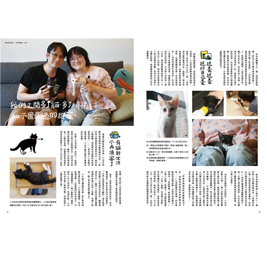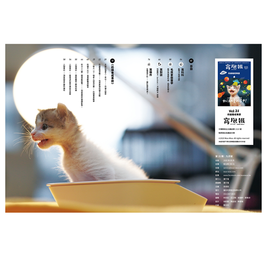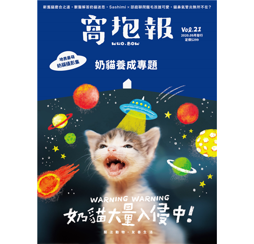 除了專題外,還有特寵飼主Sashimi與毛孩飼主邵庭的獨家對談、毛孩家庭醫學深入解析貓鼻氣管炎、奇異貓形狀的攝影徵件,更有精美別冊教你如何帶新貓認識舊貓,一本雜誌裡塞滿豐富內容與深度知識,是窩抱報始終不變的初衷。