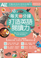 《每天10分鐘打造英語閱讀力》精選「美食饗宴」、「歷史文化」、「動物王國」和「生態環境」這四大類文章,讓讀者可以選擇不同的內容,每天撥出短短十分鐘來學習英文,並同時獲得實用又有趣的新知。在「美食饗宴」,從早午餐、正餐到點心、飲品,介紹各種美食的起源歷史以及相關的趣聞。「歷史文化」,收集了許多我們習以為常的事物的不為人知歷史,以及世界各國多元奇異的文化和習俗。在「動物王國」,讀者學到松鼠能使尾巴升溫來嚇阻天敵、黑猩猩和狒狒能使用手語並透過符號字和人類溝通。而我們最熟悉的動物朋友,狗、貓或倉鼠也有許多令人稱奇的行為和習性。「生態環境」探討了重要的環保議題,將會介紹實用的減塑方法,一改使用「一次性」產品和「用過即丟」等對環境不友善的消費模式。