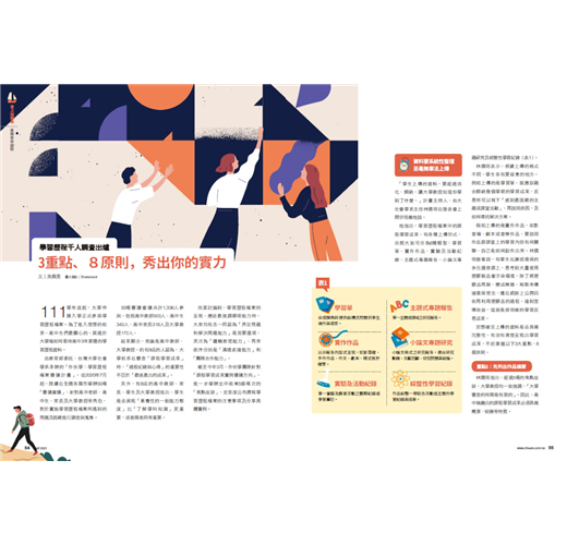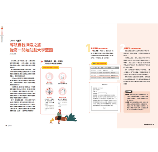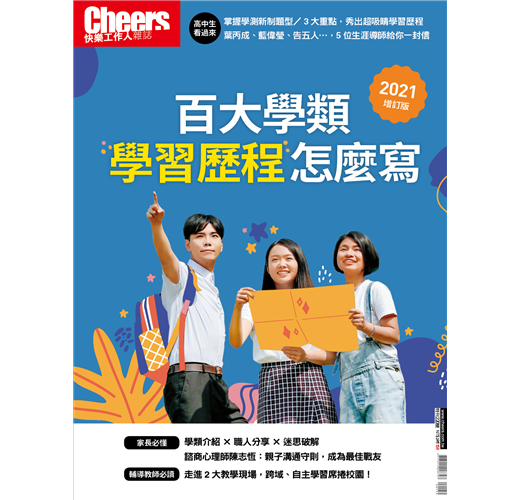 2020年,《Cheers》首度以生涯探索為主題,推出專刊《百大學類學習歷程怎麼寫》,期盼幫助學生在108新課綱施行下,更有效率地自我探索。隨著明年新課綱下的第一屆學生正式接軌大學,這本專刊中除了傳授如何累積學習歷程檔案,也深度剖析新型學測試題的變化與準備方向。