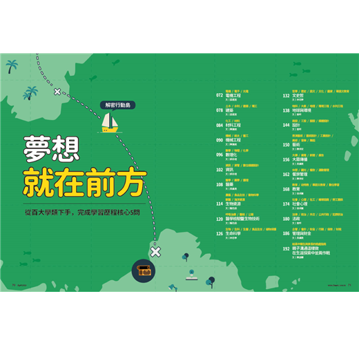 此外本刊同時邀請四位極具重量的教育界代表,及新世代領袖撰寫「給高中生的一封信」,從教學、陪伴、輔導、同理、激勵等角色,給予高中生們在生涯探索路上的一句句溫柔提醒,鼓勵學生們找到所愛、愛其所選。本刊透過5大主題切入,除了有系統地引領高一至高三學生啟發興趣與專長、逐步累積學習歷程,及聚焦未來方向,讓學生徜徉在自我探索的趣味旅程中;亦對應高中家長與教師們的各自需求、大學最新的選才方向,到現今職場青睞的人才趨勢變化,提供最全面的高中生涯探索資訊。