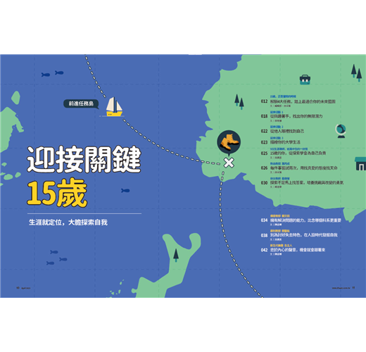如果你正值15∼18歲,那麼一切都還來得及,在這段黃金探索期,你做的每個嘗試,都攸關未來的自己將會去到何方。即使做錯選擇或半途迷路,也不要緊,就算繞點路,還是能抵達目的地。