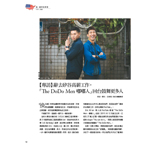 52【專訪】辭去矽谷高薪工作,「The DoDo Men 嘟嘟人」回台鼓舞更多人
