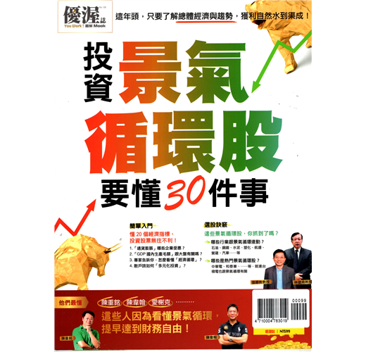主標題:投資景氣循環股要懂30件事內容大綱:Part 1:前言 Part 2:基礎篇Part 3:分享篇Part 4:方法篇Part 5:附錄特色:為什麼你總是在股市滅頂?讀懂經濟學,掌握景氣趨勢就能百戰百勝!