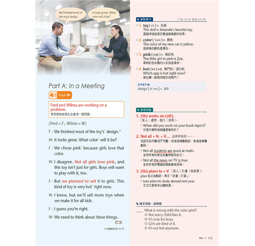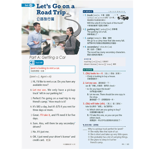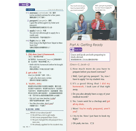 每一篇除了實用的對話之外,還包含教育部所頒訂之必備單字、片語句型和實用例句,更附有真人影片幫助讀者浸潤式學習,搭配電腦互動學習軟體下載版內容,讀者可聆聽專業的外籍老師發音,提升英語聽力與口說能力。
