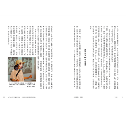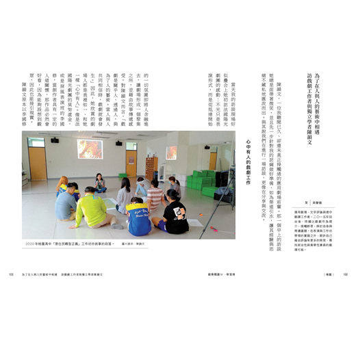 尤其,本期內容一部分側重於「表演者」,因為表演者是在第一線體現「劇場做為一個身體實踐場域」的腳色,如〈上課啦,劇場人!——澳門表演者育成之路〉對近年澳門劇場表演訓練計畫的梳理、鎮日在醫院陪伴病童「紅鼻子小丑醫生」,如何轉化醫院現場的沉重與未知等。關注民眾劇場、應用劇場的黃馨儀,則深入採訪校園現場及參與教育政策的教師與劇場工作者,引我們一窺表演藝術在義務教育的暗與光。而「可揚與他的快樂夥伴」提供的《我們清醒,於是反抗世界的無窮反覆》口述影像文本及舞作錄影連結,雖挾帶當前的文化平權功能,但我們亦可藉此探索從非語言的舞蹈到語言的轉述之間的翻譯性。