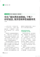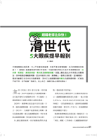 本期〈滑世代 5大眼疾提早報到〉(見60頁)特別企劃,起因是記者鄧桂芬發現,白內障、乾眼症、黃斑部病變、青光眼及視網膜剝離,這5大本來是老年人專屬的眼疾,20年來,罹患年齡滑溜梯,人數則是攀天梯,視力保健工作刻不容緩。