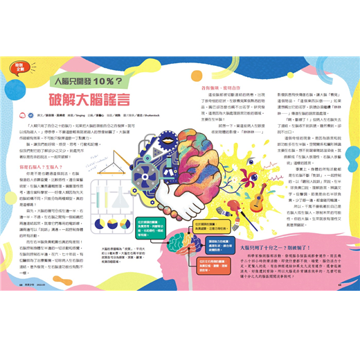 有人說:右腦發達的人依靠直覺、比較感性;左腦發達的人偏重理性思考⋯⋯難道腦只能分為這兩種類型?大腦的確可分為左半邊和右半邊。雖然語言和說話功能多在左半腦,空間關係和圖形辨識主要在右腦,但其實身體的所有活動都是靠左右腦不斷「對話」,一起控制,缺一不可。