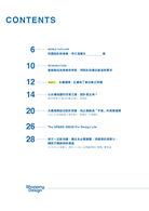 WORLD OUTLOOK 所謂設計新商業,早已落實在_裡 10 INTRODUCTION 當變動成為商業新常態,用設計回應且創造新需求 12 Part 1永續循環 : 永續為了解決真正問題 14 以永續為題的改革之路,設計是主角? 春池玻璃 W 春池計劃主理人 吳庭安 20 永續發展結合設計思維,為企業創造「平衡」的商業循環 Plan b 共同創辦人暨合夥人 游適任 ╳ 陳韻竹 26 The GREEN IDEAS For Design Life 28 新不一定能持續、舊也未必要顛覆,用精準的洞察力,