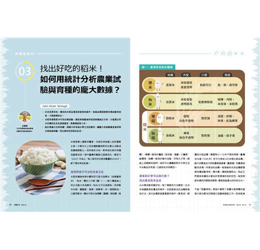 20 封面故事三:找出好吃的稻米!如何用統計分析農業試驗與育種的龐大數據?/呂椿棠