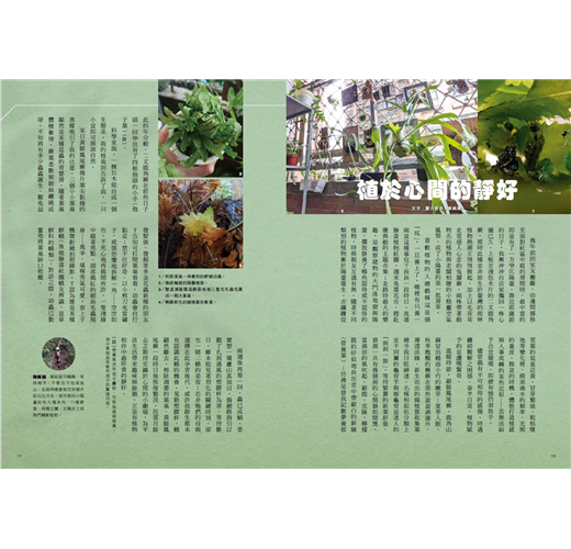 從斗室來到戶外,在南投蓮華池及恆春熱帶植物園中打開感官,觀察葉子的色澤、形狀、脈絡、氣味與質地。只要慢下腳步並留意周遭植物,山林、海畔、甚至住家附近的公園,都能成為觀葉祕境,在與植葉無聲相談的過程中,找回內心的平靜。
