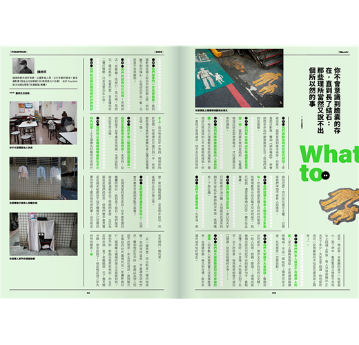 桌面的開放性質與共通功能讓它不是徹底向內的一面,但個人化的使用經驗又讓它不是徹底對外的一面,它很像有時描述一個人「原來他有這一面」,你知道的,「這一面」總是每個故事裡最有話可說的部分,就像你或許已經發現:本期書封是《Fountain 新活水》編輯部截稿前的會議桌,而我們的這一面,大概就是小廢物、小廢物以及更多的小廢物⋯⋯不過我想,你早就知道了。你還是快點翻過這一面,往下看看其他人的那一面吧。