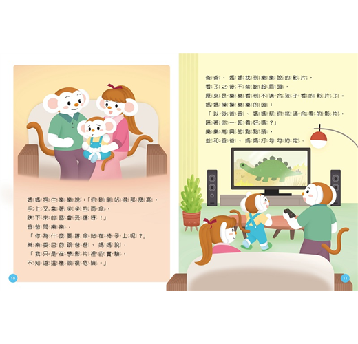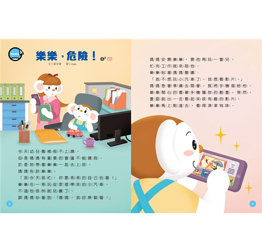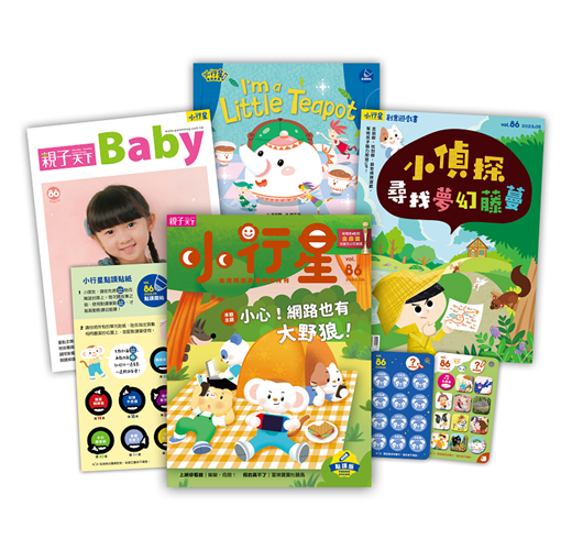 各單元也與「數位素養」有精采聯動:「情緒劇場」中,樂樂天真的模仿網路影片裡的跳傘實驗,差點從高處一躍而下,讓爸媽捏了把冷汗,故事傳達家人陪伴上網的重要;「讀首小詩」以繽紛、炫目的畫面搭配詩句,呈現網路世界充滿魅力又帶點危險的意象;「腦筋轉轉彎」邀請孩子動腦想一想、討論看看,在路上撿到手機該怎麼辦?呼應大野狼這個反派角色;「動物新鮮事」介紹鳥界有名的騙子——杜鵑,把蛋下到別人家,讓別人來養自己的小孩,動物們為了生存,也在大自然上演著爾虞我詐的戲碼呢!相信這一期的內容,也能讓小朋友有許多新鮮又實用的收穫喔!