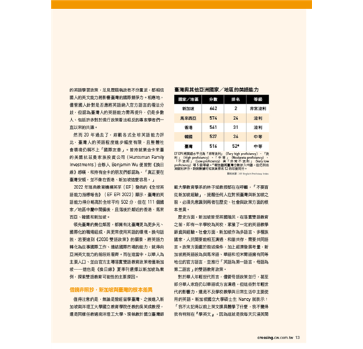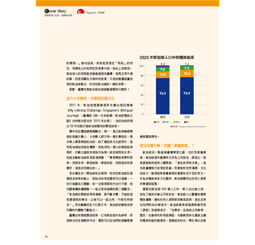 新加坡 借鏡非照抄──新加坡「雙語教育」教我們的事:務實、彈性、國際素養 文・林欣蘋/換日線編輯部 12