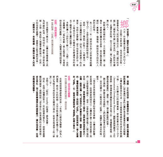 這群勇者都在與急速少子化、農地飆漲、一窩蜂觀光等問題賽跑(見140、148、154頁),作家龍應台最新散文更逼人直視村莊美好與殘酷(見22頁)。我們希望將感動傳遞給讀者,規劃二十二條山川里海路線,歡迎一起動身。(見164頁)