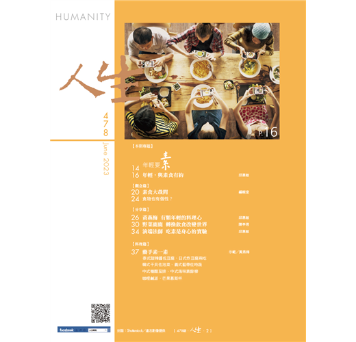 透過飲食自覺,一口飯菜,不僅可以改變自己,也是擁抱世界的開始。讓我們隨素食網紅「野菜鹿鹿」、廚師出身的演端法師、義工主廚黃燕梅,體驗如何透過素食來進行一場身心的實驗。本期專題提供六道異國料理、兩道甜點,邀您動手素一素,享受料理樂趣多。
